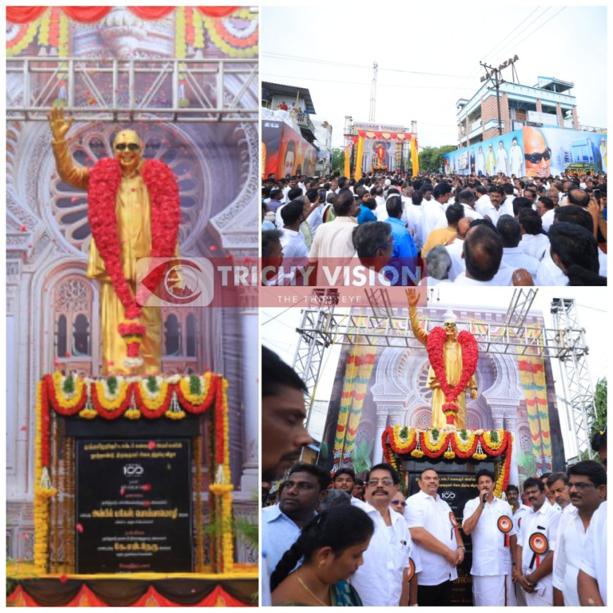 திருச்சி தெற்கு மாவட்ட தி.மு.க ஏற்பாட்டில் திருவெறும்பூர் சட்டமன்ற தொகுதியில் காட்டூர் ஆயில்மில் செக்போஸ்ட், அருகில் முத்தமிழறிஞர் டாக்டர் கலைஞரின் நூற்றாண்டு திருவுருவ சிலை திறப்புவிழா நடைபெற்றது. இதில் பள்ளிக்கல்வித்துறை அமைச்சரும், திருச்சி தெற்கு மாவட்ட கழகச் செயலாளருமான மகேஸ் பொய்யாமொழி தலைமையில்
