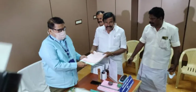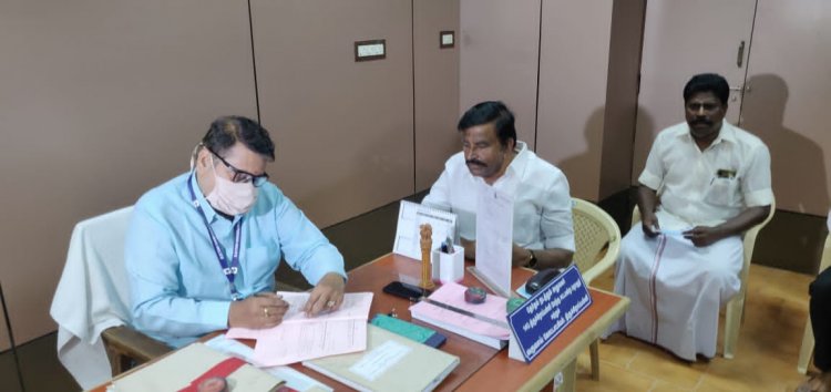 திருச்சி மேற்கு சட்டமன்ற தொகுதி வேட்பாளராக திமுக சார்பில் போட்டியிடும் திமுகவின் முதன்மை செயலாளர் கே.என்.நேரு வருவாய் கோட்டாட்சியர் அலுவலகத்தில்  கோட்டாட்சியர் விஸ்வநாதனிடம் வேட்பு மனுவை தாக்கல் செய்தார்.