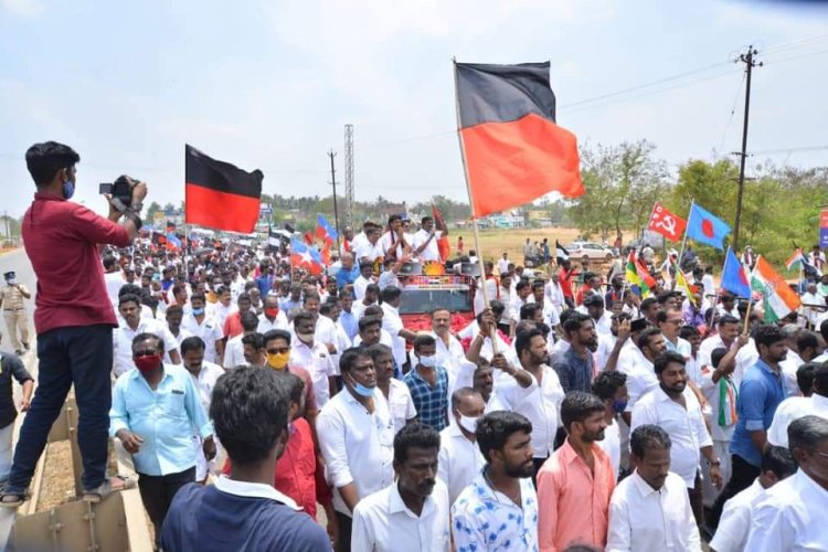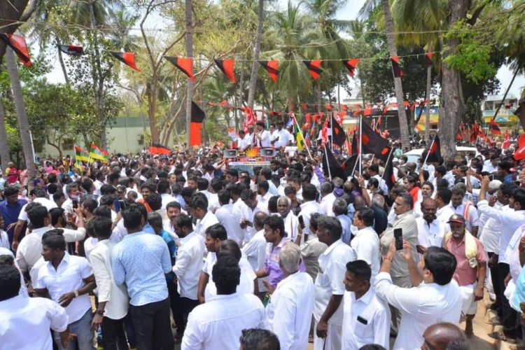 வேட்புமனுத் தாக்கலின் போது மேளதாளங்கள் முழங்க வாண வேடிக்கையுடன், குதிரை ஆட்டம் , பொய்க்கால் ஆட்டம் , ஆகியவற்றுடன் தொண்டர்கள் புடைசூழ திமுக வேட்பாளர் அன்பில் மகேஷ் பொய்யாமொழி தொமுச அலுவலகத்தில் இருந்து திருச்சி தஞ்சை சாலையில் திருவெறும்பூர் கடைவீதி வழியாக ஊர்வலமாக வந்தார்.