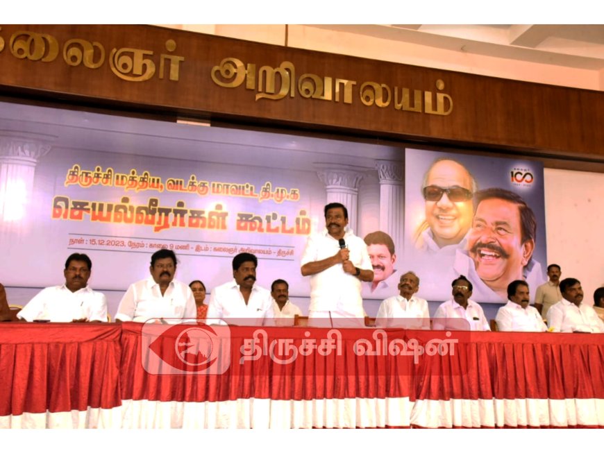 திருச்சி மாவட்டத்தில் மத்திய மற்றும் வடக்கு மாவட்ட தி.மு.க செயல்வீரர்கள் கூட்டம் திருச்சி கலைஞர் அறிவாலயத்தில் மாவட்ட அவைத்தலைவர் பேரூர் தர்மலிங்கம் மற்றும் அம்பிகாபதி ஆகியோர் தலைமையில் இன்று காலை நடைபெற்றது.