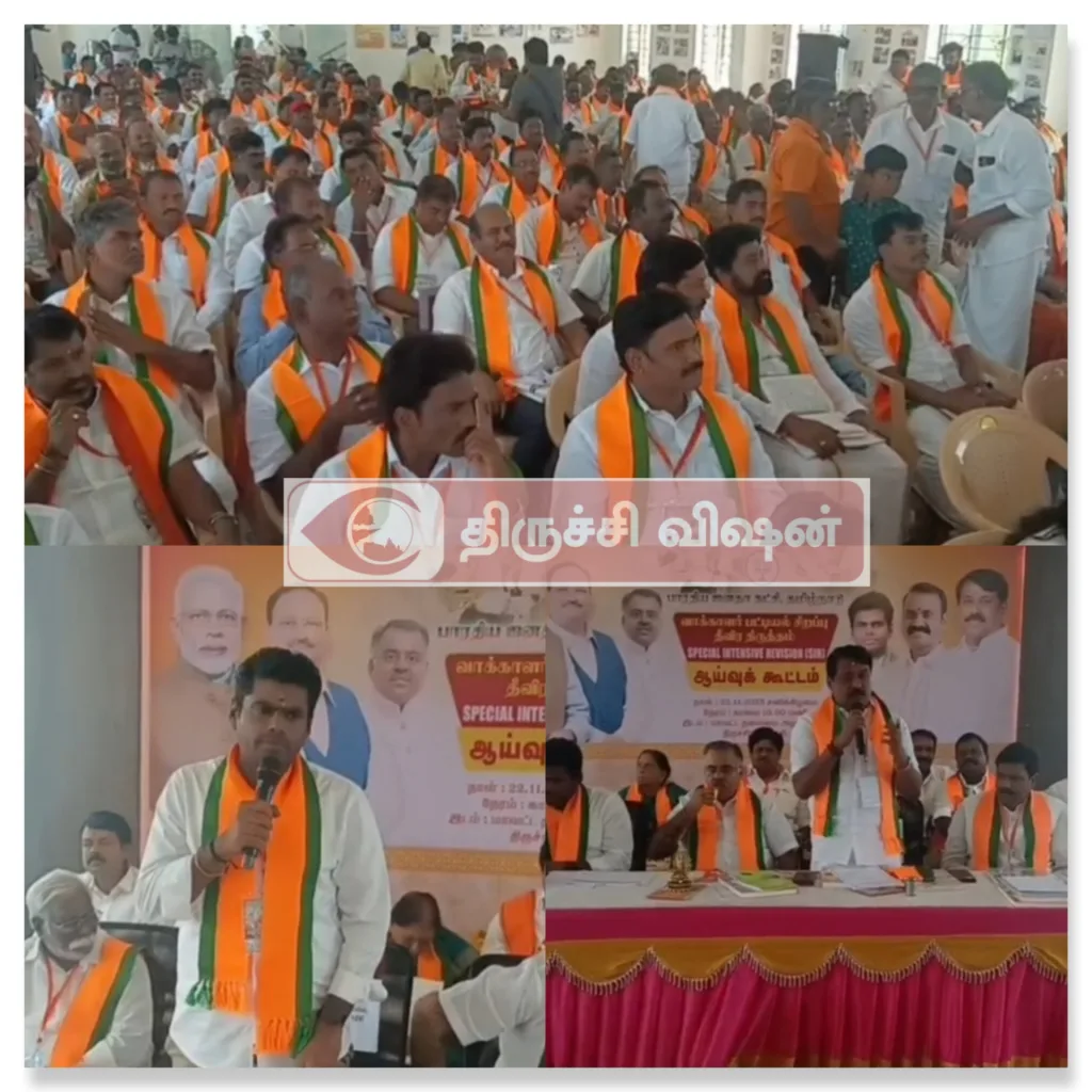 SPECIAL INTENSIVE REVISION (SIR) சிறப்பு திருத்தம் குறித்த விளக்கக் கூட்டம் திருச்சி பாஜக மாவட்ட அலுவலகத்தில் இன்று நடைபெற்றது.