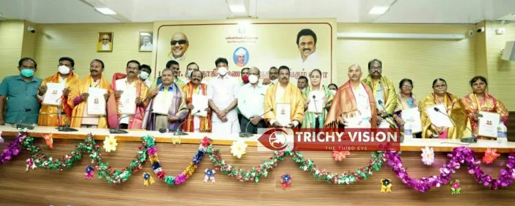 திருச்சி மாவட்ட ஆட்சியரகத்தில், ஆசிரியர்களுக்கு டாக்டர்.இராதாகிருஷ்ணன் விருது வழங்கும் விழா மாவட்ட ஆட்சித்தலைவர் சு.சிவராசு தலைமையில் இன்று (05.09.2021) நடைபெற்றது. இவ்விழாவில் பள்ளிக்கல்வித்துறை அமைச்சர் அன்பில் மகேஸ் பொய்யாமொழி பங்கேற்று திருச்சிராப்பள்ளி மாவட்டத்தைச் சேர்ந்த 13 ஆசிரியர்களுக்கு டாக்டர் இராதாகிருஷ்ணன் விருதினை வழங்கினர்.
