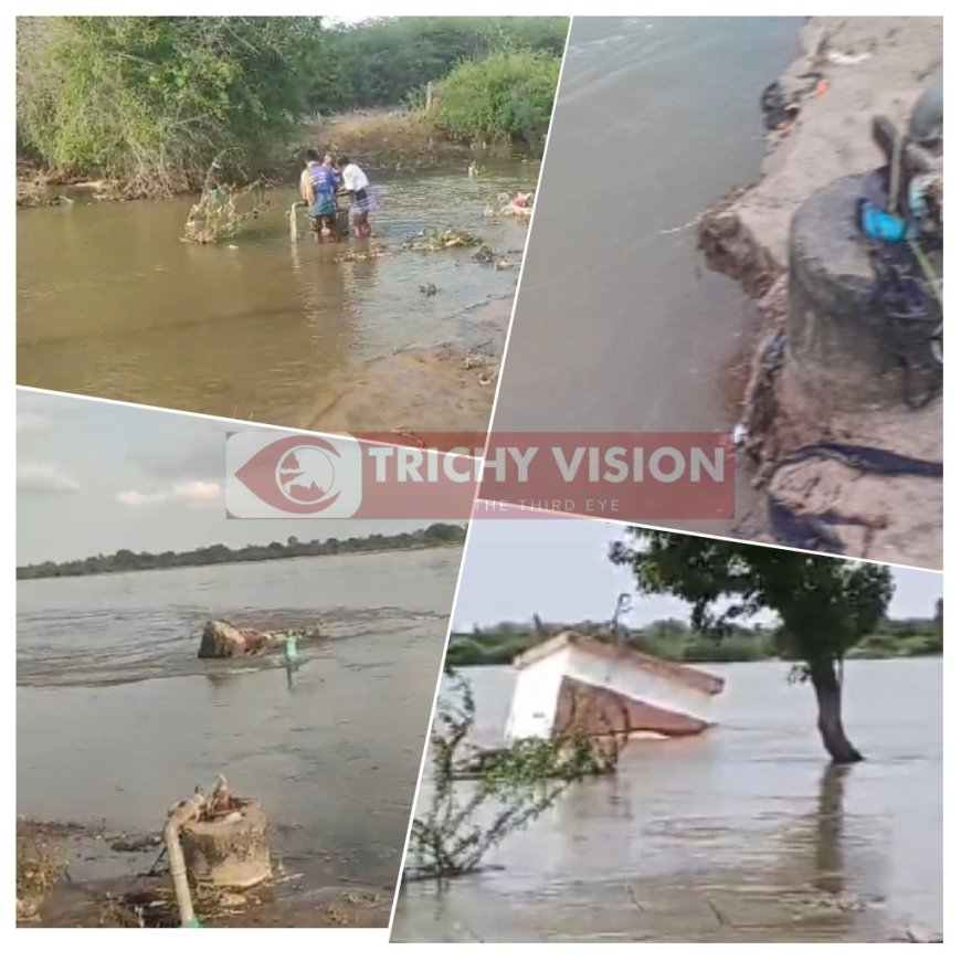 இந்த நிலையில் கடந்த சில தினங்களாக கொள்ளிடம் ஆற்றில் நீர் திறப்பு படிப்படியாக அதிகரித்தது. ஒரு கட்டத்தில் 1.30 லட்சம் கன அடி நீர் திறக்கப்பட்டதால் கொள்ளிடம் ஆற்றின் இரு கரைகளையும் தொட்டுக்கொண்டு நீர் பாய்ந்தோடியது. இதனால் விரகாலூரில் ஆற்றோரத்தில் இருந்த நீரேற்று நிலையம், மற்றும் மின் சாதனங்கள் அனைத்தும் ஆற்று நீரில் அடித்துச் செல்லப்பட்டது.
