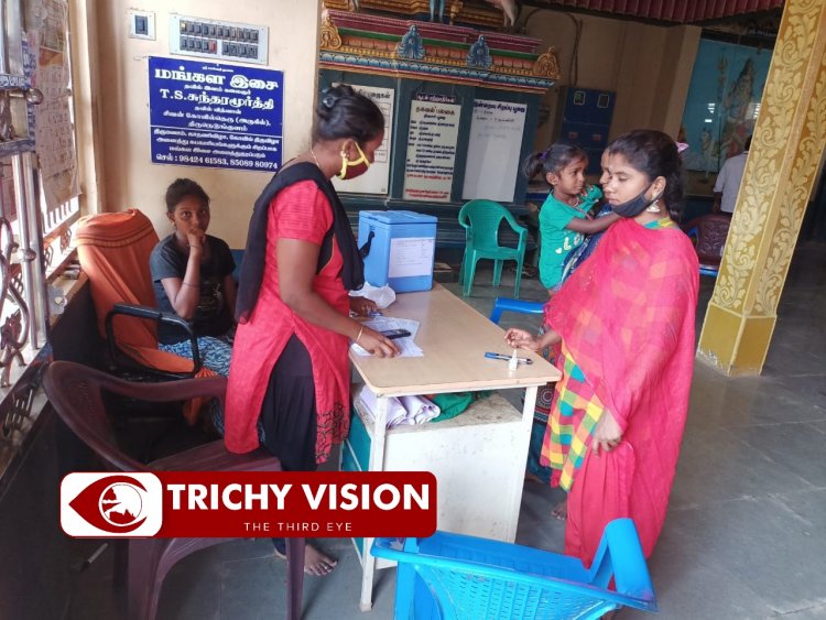 திருச்சியில் கோவிலில் சொட்டு மருந்து முகாம் – பொதுமக்கள் அச்சம்!!