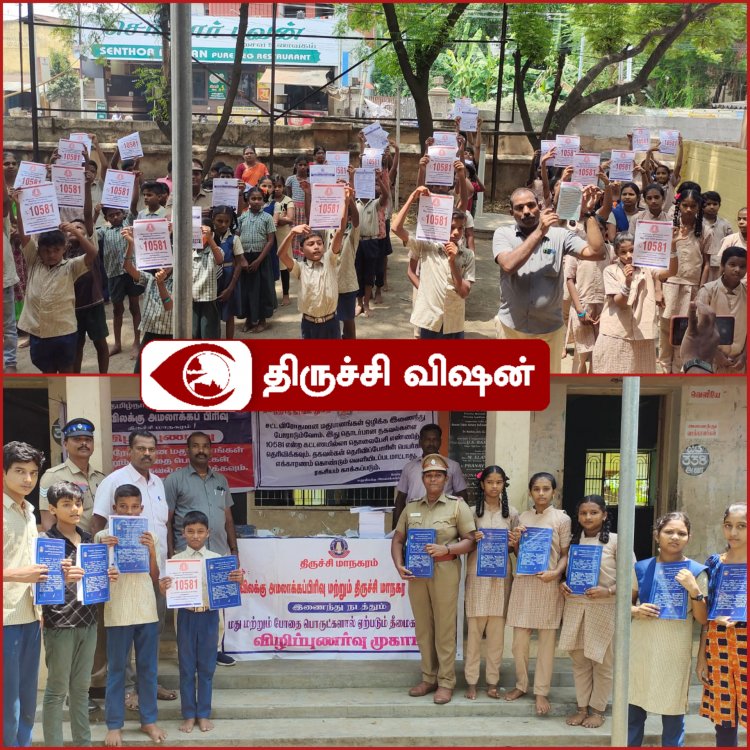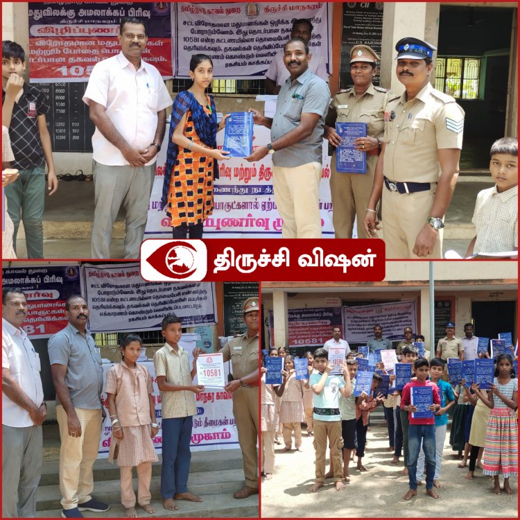 மதுவிலக்கு பிரிவு காவல் ஆய்வாளர் (பொறுப்பு) சிந்துநதி திருச்சி மாநகர பகுதிகளில் கள்ளசாராயம் , எரிசாராயம், போலி மதுபானம், சட்டத்திற்கு புறம்பாக மது விற்பனை செய்பவர்கள் ஆகியோர் இருப்பின் மதுவிலக்கு பிரிவு கட்டணமில்லா தொலைபேசி எண் 10581 தகவல் தெரிவிக்கலாம் என்று விழிப்புணர்வு வழங்கினார்.