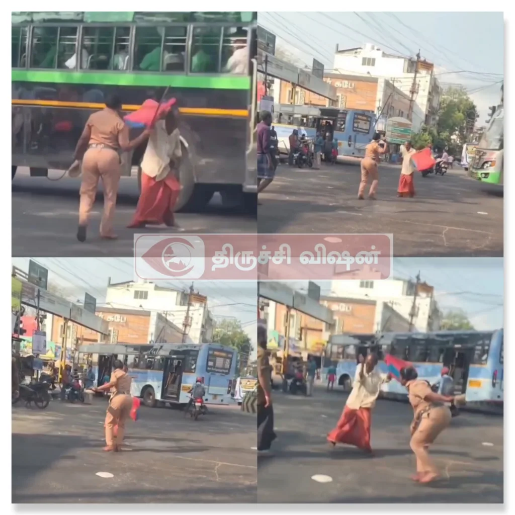 திருச்சி, ஜங்ஷன் ரயில்வே நிலையம் பகுதியில் பேருந்துக்காக நின்றுகொண்டிருந்த பெண் பயணிகள் மற்றும் ஊர்க்காவல்படை பெண் போலீசாரிடம் போதையில் முதியவர் ஒருவர் அலப்பறை செய்து, தொந்தரவு கொடுத்துள்ளார்.