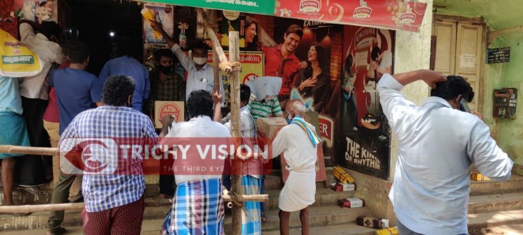 ஒருவரே அதிக அளவிலான மதுபாட்டில்களை வாங்கி செல்கின்றனர்.14 நாட்கள் மூலம் முழுமுடக்ககம் என்பதால் மதுபாட்டில்களை வாங்கி குவிக்கும் எண்ணத்தில் மதுப்பிரியர்கள் கடைகளை நாடி உள்ளனர். முக கவசம் அணிந்து அனைவரும் வந்து உள்ளனர். தனிமனித இடைவெளி இல்லாமல் ஒருவரை ஒருவர் முண்டியடித்துக் கொண்டு மதுபானங்கள் வாங்கும் நிலை தான் உள்ளது.