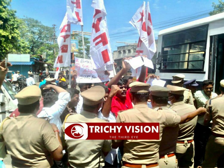 இந்நிலையில் திருச்சி ரயில்வே சந்திப்பு முன்பாக திரண்ட இந்திய ஜனநாயக வாலிபர் சங்கத்தை சேர்ந்த இளைஞர்கள் நுழைவாயிலை நோக்கி மத்திய அரசுக்கு எதிராக கண்டன முழக்கங்களை எழுப்பியவாறு பேரணியாக வந்து தண்டால் எடுத்து போராட்டத்தில் ஈடுபட முயன்றனர். இதற்கு காவல்துறையினர் அனுமதி மறுத்ததால் அக்னிபாத் திட்டம் என எழுதப்பட்ட காகிதங்களையும் கிழித்து எறிந்தனர். இதனை தொடர்ந்து 20க்கும் மேற்பட்ட இளைஞர்களை காவல்துறையினர் கைது செய்தனர்.