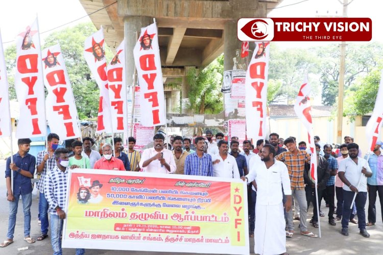 தென்னூர் மின்வாரிய அலுவலகத்தில் DYFI மாநகர் மாவட்ட செயலாளர் பா.லெனின் தலைமையில் DYFI அமைப்பின் சார்பாகவும் ஆர்ப்பாட்டத்தில் ஈடுபட்டனர் .