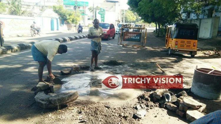 இதன் ஒரு பகுதியாக திருச்சி மாநகரின் பிரதான சாலையாக உள்ள ரெனால்ஸ் ரோடு சரவணன் நினைவுத்தூபி அருகிலுள்ள சாலையில் நடுவே பெரிய பள்ளம் இருந்தது. இந்த சாலையில் செல்லும் வாகன ஓட்டிகள் இந்த பள்ளத்தில் விழுந்து காயமடைந்தனர்.
