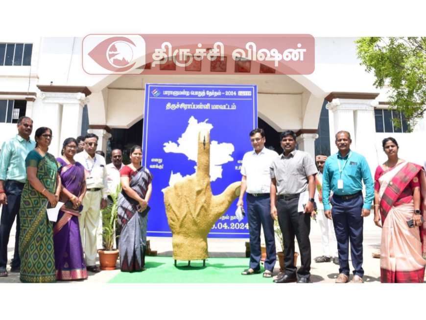 பாராளுமன்ற தேர்தல் 2024-ஐ முன்னிட்டு திருச்சிராப்பள்ளி மாவட்டத்தில் 100 சதவீத வாக்குப்பதிவை வலியுறுத்தும் வகையில் திருச்சிராப்பள்ளி மாவட்ட ஆட்சியரகத்தில் தோட்டக்கலைத்துறையின் சார்பில் நறுமண பயிர்களான வெந்தயம், கசகசா மற்றும் கருஞ்சீரகத்தைக் கொண்டு அமைக்கப்பட்டுள்ள விழிப்புணர்வு இலட்சினையை தேர்தல் நடத்தும் அலுவலர் / மாவட்ட ஆட்சியர் மா.பிரதீப் குமார்,பாராளுமன்ற தேர்தல் பார்வையாளர் (பொது) ததினேஷ் குமார்,ஆகியோர் இன்று (08.04.2024) பார்வையிட்டனர்.