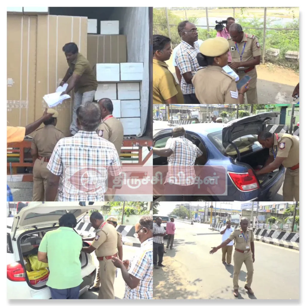 திருச்சி சஞ்சீவி நகர், சென்னை பைபாஸ் சாலை மற்றும் பல்வேறு இடங்களில் பறக்கும் படையினர் மற்றும் நிலைக்குழு அதிகாரிகள் சோதனையில் ஈடுபட்டுள்ளனர்.