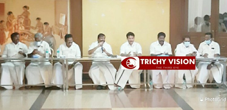 திருச்சி கலைஞர் அறிவாலயத்தில் திமுக மற்றும் தோழமை கட்சிகளுடனான தேர்தல் ஆலோசனை கூட்டம் நகராட்சி நிர்வாக துறை அமைச்சர் கே.என்.நேரு, தலைமையில் பள்ளிக்கல்வித்துறை அமைச்சர் அன்பில் மகேஷ் பொய்யாமொழி முன்னிலையில் நடைபெற்றது.