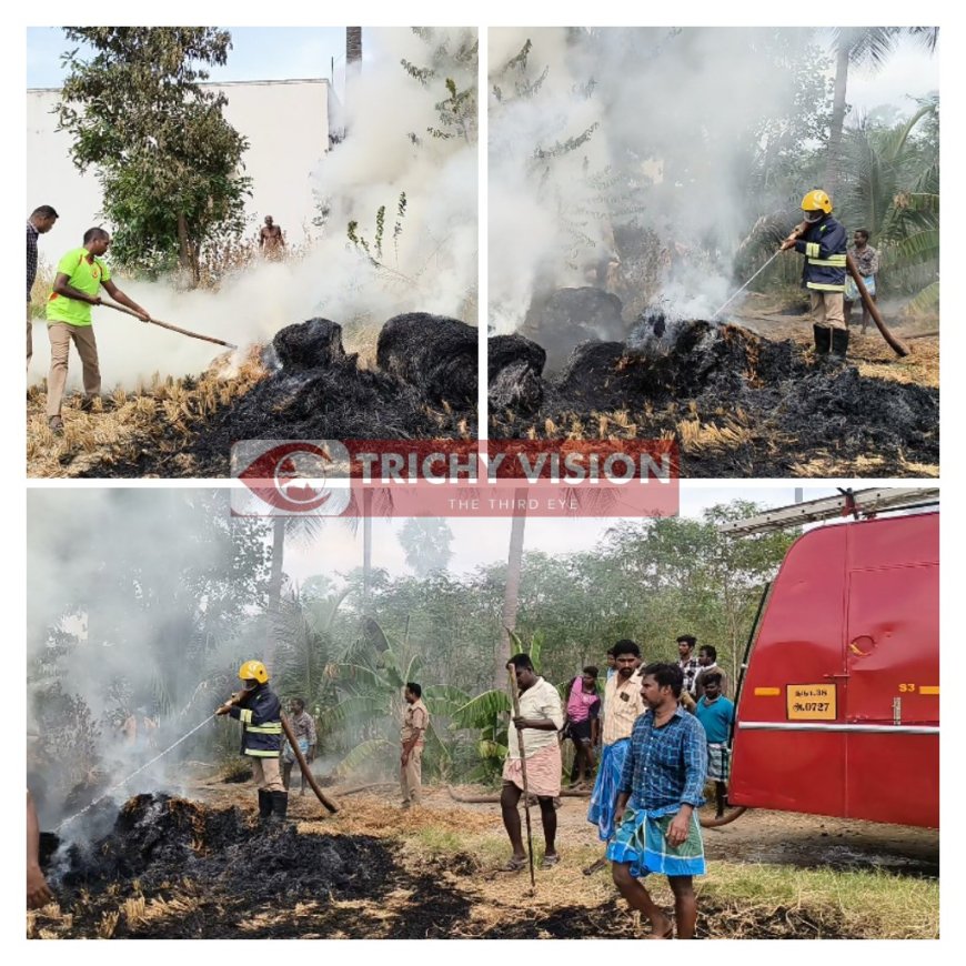 திருச்சி மாவட்டம் துறையூர் அடுத்துள்ள பச்சபெருமாள்பட்டி ஊராட்சி பனந்தோப்பு பகுதிக்கு நடராஜன் என்பவருக்கு சொந்தமான தோட்டத்தில் உள்ள வைகோல் கட்டுகள் விற்பனைக்கு வைக்கப்பட்டிருந்தன.