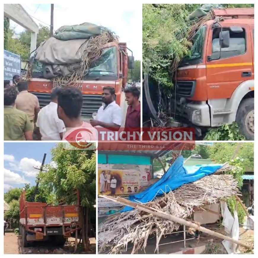அப்போது திருச்சி – நாமக்கல் மெயின் ரோட்டில் தொட்டியம் ஊராட்சி ஒன்றிய அலுவலகம் அருகே வந்து கொண்டிருந்தபோது டிரைவரின் கட்டுப்பாட்டை இழந்த லாரி சாலை ஓரத்தில் இருந்த உணவகம், பெட்டி கடைகள் மற்றும் மின்கம்பங்கள் மீது மோதி உள்ளது. இந்த சம்பவத்தில் சாலையோரத்தில் நிறுத்தி வைக்கப்பட்டிருந்த 2 மொபட்டுகள், மூன்று மின் கம்பங்கள் மற்றும் உணவகம், பெட்டி கடைகள் முன்பகுதி சேதம் அடைந்தது.