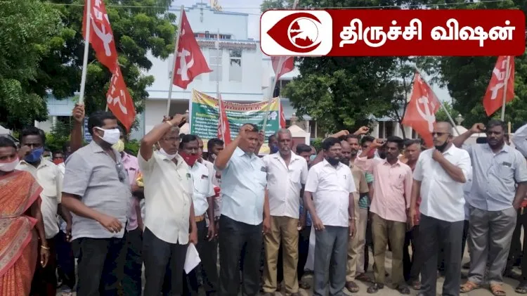 தமிழ்நாடு மின் ஊழியர்கள் திருச்சி மேற்பார்வை பொறியாளர் அலுவலகம் முன்பு ஆர்ப்பாட்டத்தில் ஈடுபட்டனர்.