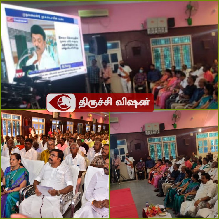 இதனையொட்டி திருச்சிராப்பள்ளி மன்னார்புரம் , காஜா நகர் வி.எஸ்.எம். மஹாலில் நடைபெற்ற மாண்புமிகு முதல்வர் அவர்களின் விழா நிகழ்வு நேரடி ஒளிபரப்பு நிகழ்ச்சியில், நகராட்சி நிர்வாகத் துறை அமைச்சர் கே .என் .நேரு பங்கேற்றார். இந்நிகழ்வில் மேயர் மு. அன்பழகன் , ஸ்ரீரங்கம் சட்டமன்ற உறுப்பினர் எம். பழனியாண்டி, மாவட்ட வருவாய் அலுவலர் (பொறுப்பு).இரா அபிராமி, மாவட்டப் பிரமுகர் க.வைரமணி, தமிழ்நாடு மின் பகிர்மானக் கழக தலைமைப் பொறியாளர் அருள்மொழி மேற்பார்வைப் பொறியாளர் வீரமுத்து மற்றும் 600க்கும் மேற்பட்ட விவசாயிகள் மின் வாரியப் பொறியாளர்கள் உள்ளிட்டோர் கலந்து கொண்டனர்.