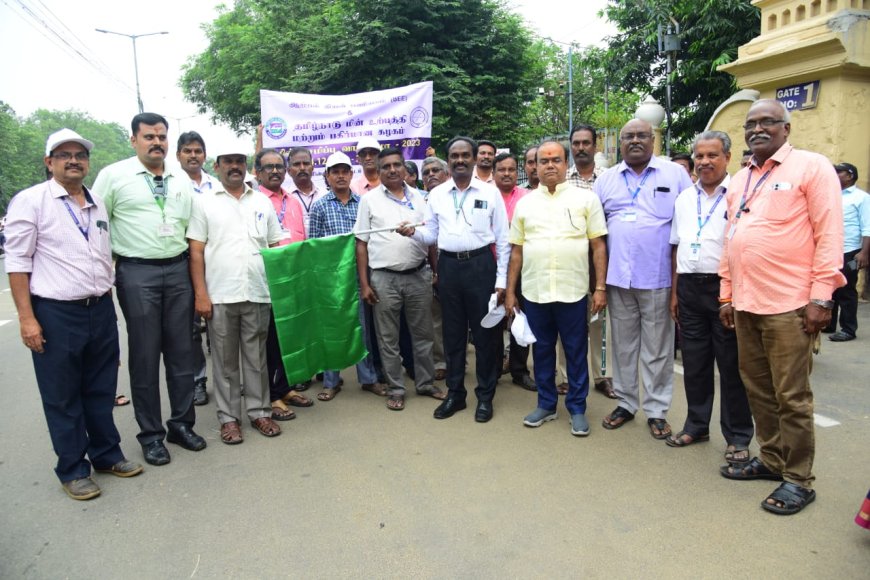 திருச்சி மின் பகிர்மான வட்டம் / பெருநகரம் / திருச்சி சார்பில் (14.12.2023) முதல் (20.12.2023) வரை மின் சேமிப்பு வார விழா” சிறப்பாக கொண்டாடப்பட்டது. அதன் நிறைவு விழாவான (20.12.2023) (புதன்கிழமை) மதியம் 3:30 மணியளவில் ஜமால் முகமது கல்லூரி முன்பு பொறிஞர்.S.பிரகாசம், மேற்பார்வை பொறியாளர் / திருச்சி மின் பகிர்மான வட்டம் / பெருநகரம் திருச்சி அவர்கள் கொடியசைத்து மகா பேரணியை துவக்கி வைத்தார். இப்பேரணியில் காஜாமியான் மேல்நிலைப்பள்ளியை சேர்ந்த 150க்கும் மேற்பட்ட பள்ளி மாணவர்கள் மற்றும் ஆசிரியர்கள் கலந்து கொண்டு மின் சேமிப்பு மற்றும் மின் பாதுகாப்பு பற்றிய பதாகைகளை ஏந்திக் கொண்டு கோஷங்களை எழுப்பினர்.