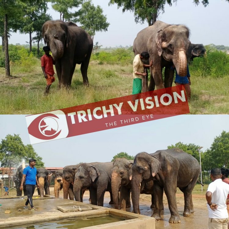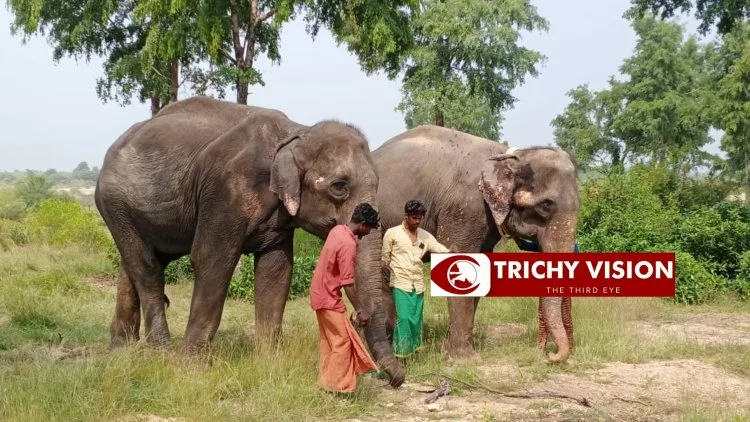 இரு யானைகளுக்கு கால்நடை மருத்துவர்கள் சிகிச்சை அளித்து பராமரித்து வருகின்றனர். இந்த யானைகள் மறுவாழ்வு மையத்தில் ஏற்கெனவே மலாத்தி, சந்தியா, ஜெயந்தி, கோமதி, ஜமிலா , இந்து என்ற 6 யானைகள் பராமரிக்கப்பட்டு வரும் நிலையில் தற்போது இந்த இரண்டு யானைகள் வந்துள்ளதால் மொத்தம் 8 யானைகளை திருச்சி மாவட்ட வனத்துறையினர் பராமரித்து வருகின்றனர்.