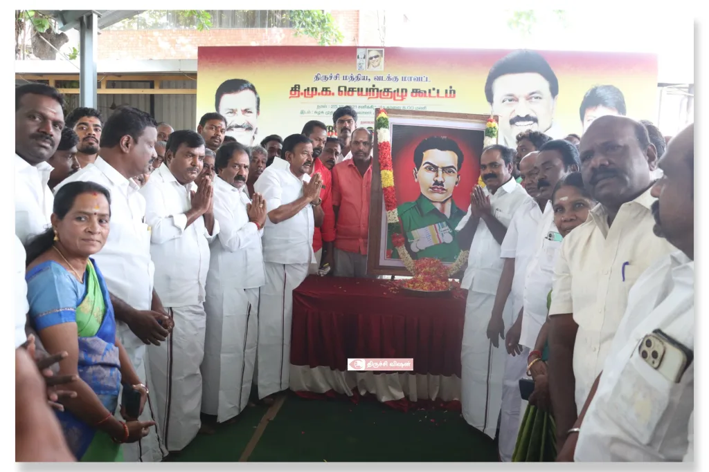 இந்நிகழ்வில் மத்திய மாவட்ட செயலாளர் வைரமணி, மாநகர செயலாளர் மேயர் அன்பழகன், துறையூர் சட்டமன்ற உறுப்பினர் ஸ்டாலின் குமார், டோல்கேட் சுப்பிரமணி, குடமுருட்டி சேகர் கோட்டதலைவர் துர்கா தேவி பகுதி செயலாளர் இளங்கோ உள்ளிட்ட மாமன்ற உறுப்பினர்கள், பகுதி செயலாளர்கள் உள்ளிட்ட ஏராளமான திமுகவினர் இம்மானுவேல் சேகரனின் திருவுருவப் படத்திற்கு மாலை அணிவித்து மரியாதை செலுத்தினர்கள்.