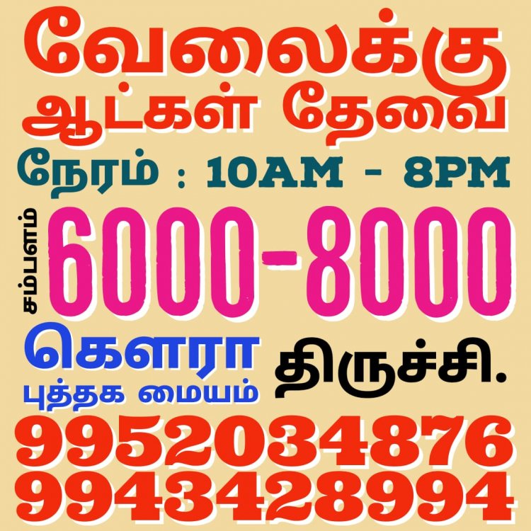 திருச்சியில் செயல்பட்டு வரும் கெளரா புத்தக மையத்தில் வேலைவாய்ப்புகள் அறிவிக்கப்பட்டுள்ளது. மேலும் விபரங்களுக்கு கீழே உள்ள படத்தை பார்க்கவும்.