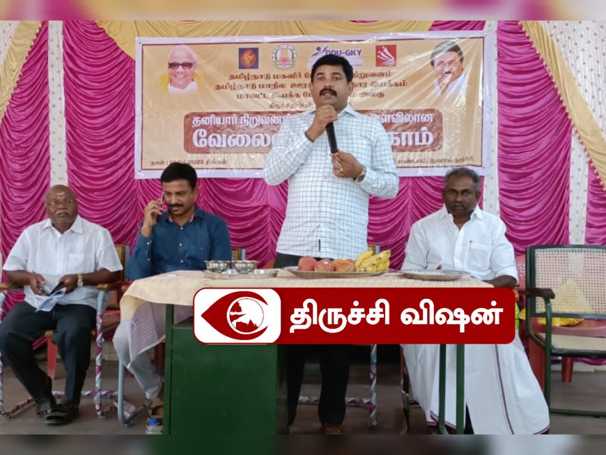 மணப்பாறை அடுத்த துவரங்குறிச்சியில் தமிழ்நாடு மகளிர் மேம்பாட்டு நிறுவனத்தின் சார்பாக படித்த வேலையற்ற இளைஞர்களுக்கு முன்னணி தனியார் நிறுவனங்கள் மூலம் வேலை வாய்ப்பு ஏற்படுத்தி தரும் பொருட்டு இலவச வேலை வாய்ப்பு முகாம் துவரங்குறிச்சி பூதநாயகி அம்மன் கோவில் மண்டபத்தில் நடைபெற்றது .