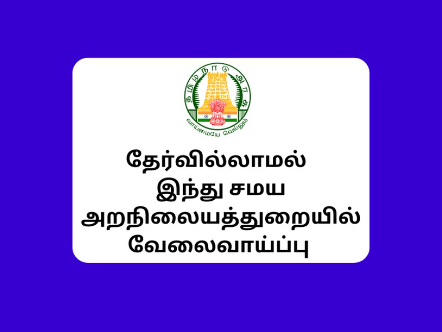 மேலும் விவரங்களுக்கு https://hrce.tn.gov.in என்ற இணையதளத்தினை பார்த்து தெரிந்து கொள்ளலாம். விண்ணப்பிக்க விருப்பம் உள்ளவர்கள், மார்ச் 3ஆம் தேதி மாலை 5 மணிக்குள், தபால் பெட்டி எண்: 3304, தி போஸ்ட் மாஸ்டர், நுங்கம்பாக்கம் MDO, ஹபிபுல்லா சாலை, (தி.நகர் வடக்கு தபால் அலுவலகம் மேல்மாடி) நுங்கம்பாக்கம், சென்னை – 34. என்ற முகவரிக்கு விண்ணப்பங்கள் கிடைக்குமாறு அனுப்பி வைக்க வேண்டும்.