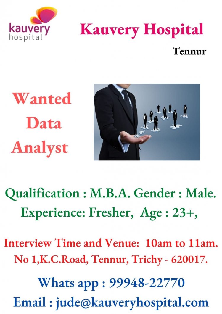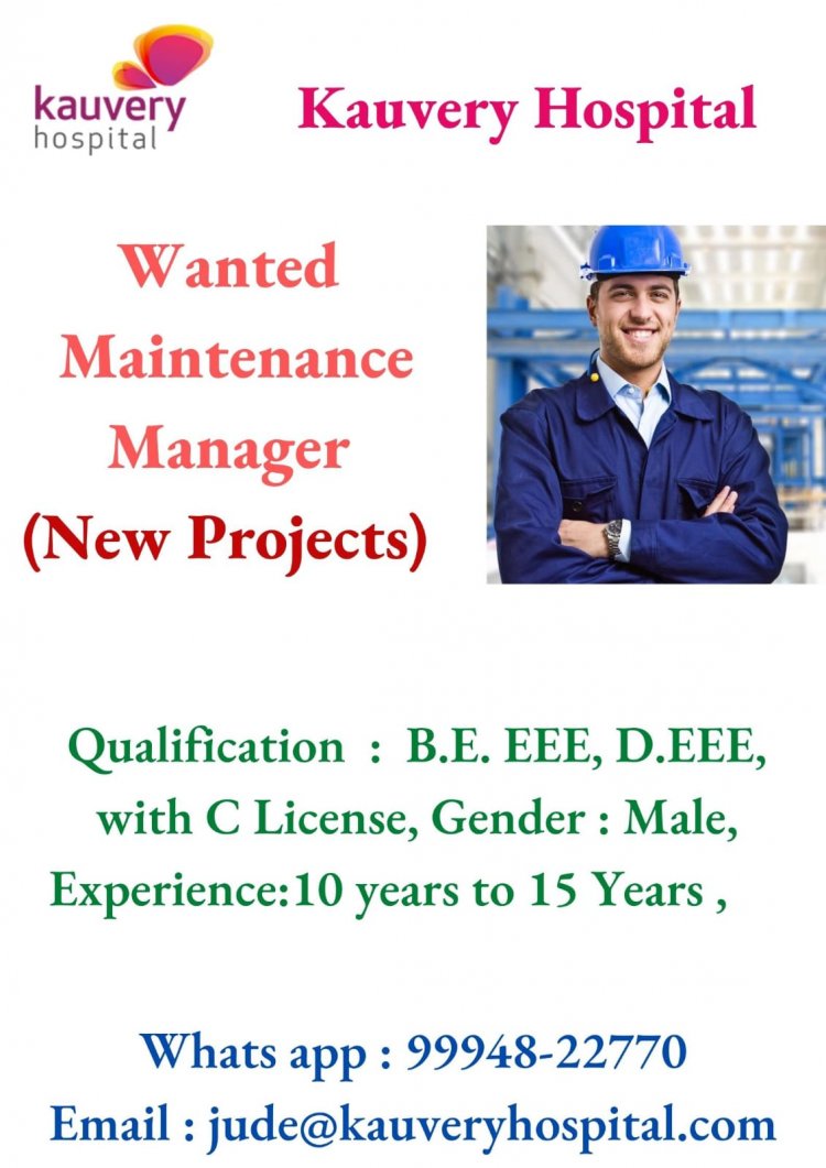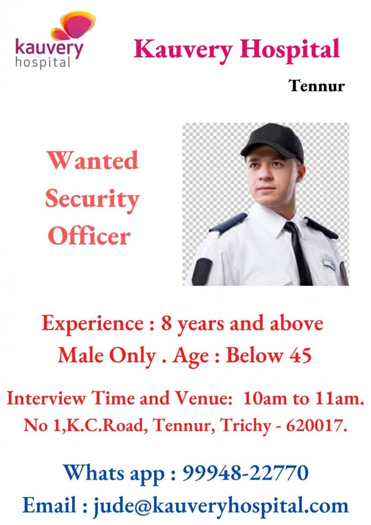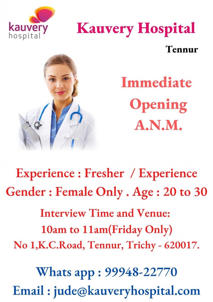 திருச்சி காவேரி மருத்துவமனையில் கீழ்கண்ட பணியிடங்களுக்கு வேலை வாய்ப்புகள் அறிவிக்கப்பட்டுள்ளது மேலும் தகவல்களுக்கு கீழே உள்ள படத்தை பார்க்கவும்.