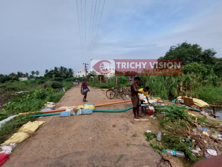 திருச்சி உறையூர் பாத்திமா நகர் பகுதியில் உய்யகொண்டான் வாய்க்கால் கரை பகுதியில் உள்ளது .இந்த பகுதியில் 500க்கும் மேற்பட்ட வீடுகளில் மழைநீர் சூழ்ந்தது. மூன்று நாட்கள் ஆகியும் மழைநீர் வரியாமல் நிற்பதால் மக்கள் தங்களது அன்றாட பணிகளை மேற்கொள்வதில் கூட சிரமத்தை சந்திக்கின்றனர்.