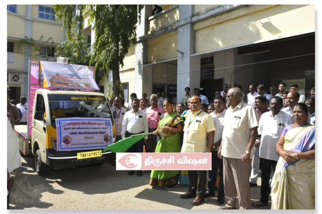 “மின் சேமிப்பு வார விழா” வை முன்னிட்டு மின் சேமிப்பு பற்றிய விழிப்புணர்வை பொது மக்களுக்கு ஏற்படுத்தும் வகையில் 15:12.2025 (திங்கட்கிழமை) அன்று திருச்சி, தென்னூர் மண்டல அலுவலகத்தில் பொறிஞர்.M.கீதா, தலைமை பொறியாளர்/பகிர்மானம்/திருச்சி மண்டலம் அவர்கள் காலை 10:00 மணியளவில் மின்சார வாகன விழிப்புணர்வு பிரச்சார வாகனத்தை கொடியசைத்து துவக்கி வைத்து மின் சேமிப்பு மற்றும் மின் சிக்கனத்தின் முக்கியத்துவத்தை பற்றி சிறப்புரை ஆற்றினார்.