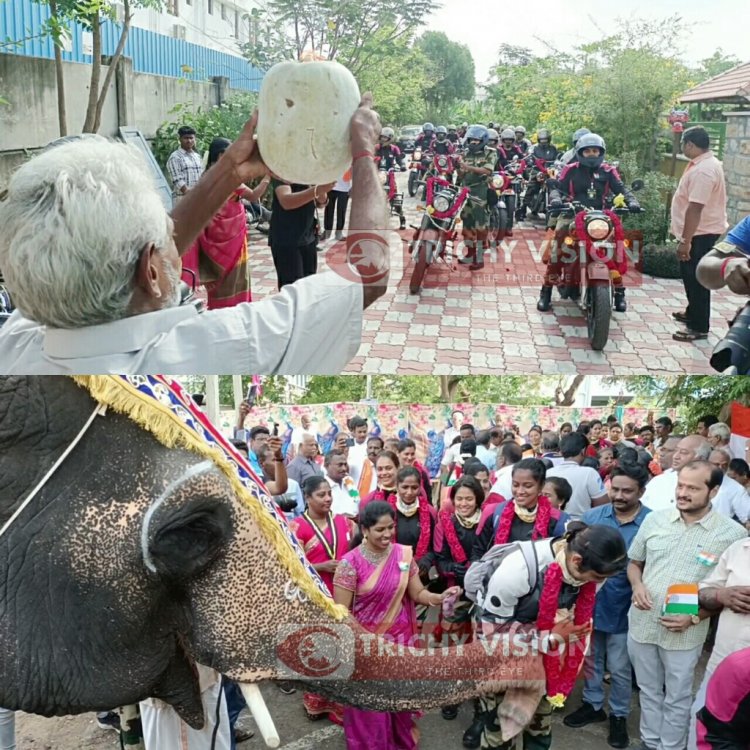 அங்கிருந்து சென்னை செல்லும் வழியில் நேற்று மாலை திருச்சி வந்தனர். தொடர்ந்து, வீராங்கனைகளின் மோட்டார் சைக்கிள் பேரணி இன்று காலை திருச்சியிலிருந்து சென்னை புறப்பட்டது. எல்லை பாதுகாப்பு படை வீரர்கள் பேரணியை திருச்சி திருவானைக்காவல் ஆண்டாள் கார்டனில் பொதுமக்கள உற்சாக வரவேற்பு அளித்தனர்.