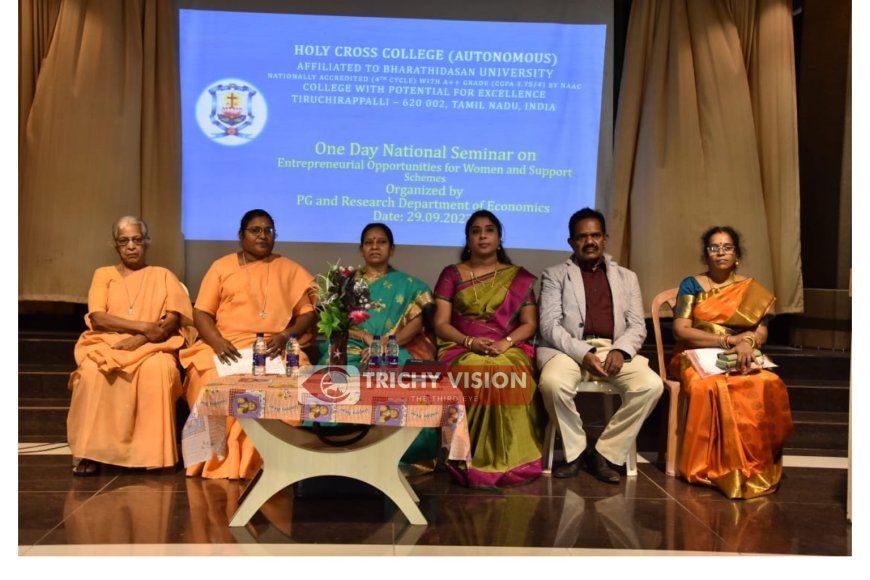 திருச்சி புனித சிலுவை கல்லூரியில், பொருளாதார துறை சார்பில், பெண்களுக்கான தொழில் முனைவோர் வாய்ப்புகள் மற்றும் திட்டங்கள்” என்னும் தலைப்பில் ஒரு நாள் தேசிய கருத்தரங்கம் கல்லூரியில் நடைப்பெற்றது.
