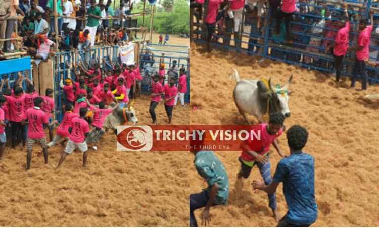 15 ஆண்டுகளுக்கு பிறகு இந்தாண்டுக்கான பொதுமக்களால் நடத்தும் சமத்துவ ஜல்லிக்கட்டு போட்டி இன்று நடைப்பெற்றது. இந்த ஜல்லிக்கட்டு போட்டியை லால்குடி வருவாய் கோட்டாச்சியர் வைத்தியநாதன் துவங்கி வைத்தார். முன்னதாக வீரர்கள் உறுதிமொழி எடுத்துக் கொண்டனர்.