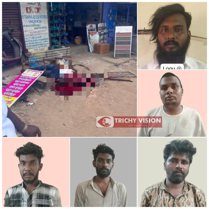 இந்த நிலையில் 6 பேர் கொண்ட கும்பல் முத்துக்குமாரை வழிமறித்து ஓட ஓட விரட்டி அரிவாளால் சரமாரியாக வெட்டினர்.இதில் முகம் சிதைந்து ரத்த வெள்ளத்தில் அவர் சம்பவ இடத்திலேயே பரிதாபமாக இறந்தார். பின்னர் கொலையாளிகள் இருசக்கர வாகனத்தில் மின்னல் வேகத்தில் அங்கிருந்து தப்பிச் சென்றனர். இந்த சம்பவம் அந்தப் பகுதியில் பெரும் பரபரப்பை ஏற்படுத்தியது. இது குறித்து அரியமங்கலம் போலீசார் வழக்கு பதிவு செய்து அப்பகுதியில் உள்ள சிசிடிவி கேமரா பதிவுகளை ஆய்வு செய்தனர். இதில் லோகநாதன் தனது கூட்டாளிகள் 5 பேருடன் சேர்ந்து முத்துக்குமாரை கொலை செய்தது தெரியவந்தது.