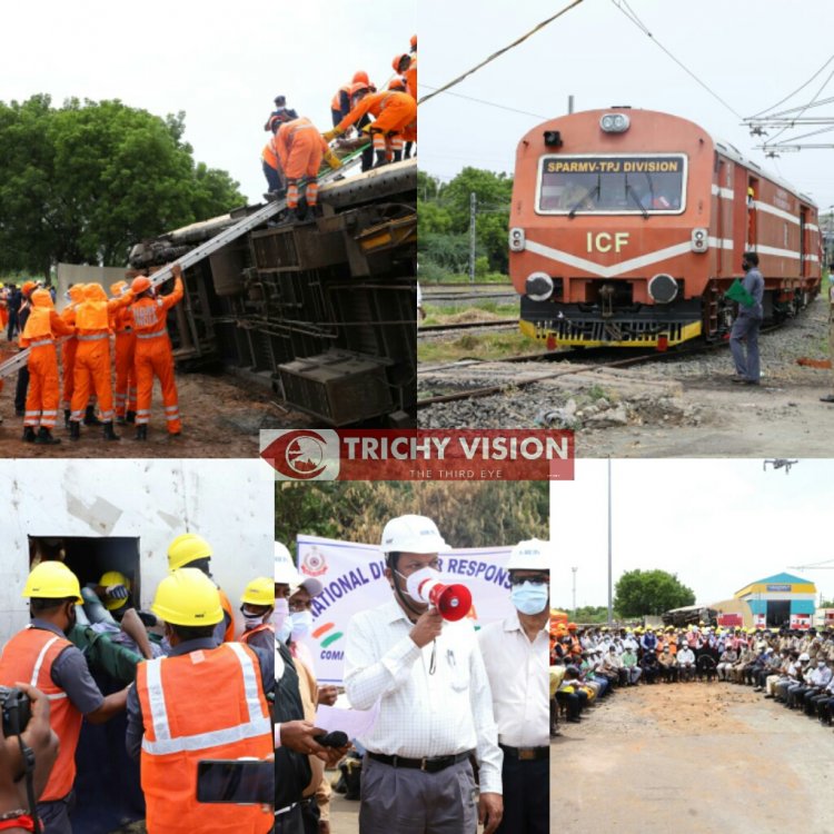 அங்க தடம் புரண்டு கிடந்த ரயில் பெட்டியை மீட்டனர். அதேபோல விபத்தால் பாதிக்கப்பட்ட 8 பேரையும் மீட்பு அவசர சிகிச்சைக்காக ஆம்புலன்ஸ் மூலம் அனுப்பி வைத்தனர். பிறகு நடந்தவை அனைத்துமே ஒத்திகை பயிற்சி என்று அறிவிக்கப்பட்டது.
