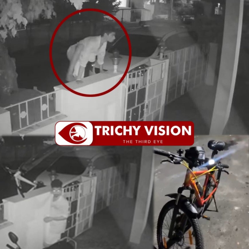 திருச்சி ஸ்ரீரங்கம் ராயர் தோப்பு பார்வதி அம்பாள் நகர் பகுதி சேர்ந்தவர் அனிஷ் பாலாஜி. இவர் தன்னுடைய வீட்டில் முப்பதாயிரம் ரூபாய் மதிப்புள்ள சைக்கிளை நிறுத்தி வைத்திருந்து உள்ளார். கடந்த (21.06.2023)ம் தேதி நள்ளிரவில் ஒரு மணிக்கு மேல் இளைஞர் அவர் வீட்டின் சுவர் ஏறி குதித்து உள்ளே இருந்த 30 ஆயிரம் மதிப்புள்ள சைக்கிளை திருடி சென்றுள்ளார்.