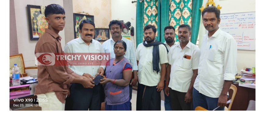 நாமக்கல் மாவட்டம் சேந்தமங்கலம் பகுதியை சேர்ந்தவர் சேரன் (20). இவர் கல்லூரி படித்து வருகிறார். இவர் தனது நண்பர்களுடன் சமயபுரம் மாரியம்மன் கோயிலுக்கு நேர்த்தி கடன் செலுத்தி அம்மனை தரிசனம் செய்ய வந்துள்ளனர். இந்நிலையில் தனது நண்பருக்கு மொட்டை அடித்து சாமி தரிசனமும் முடித்துவிட்டு கோயில் வளாகத்தில் கோயில் பிரசாதம் சாப்பிட்டபோது செல்போனை கீழே மறந்து வைத்துவிட்டு சென்றுள்ளார்.