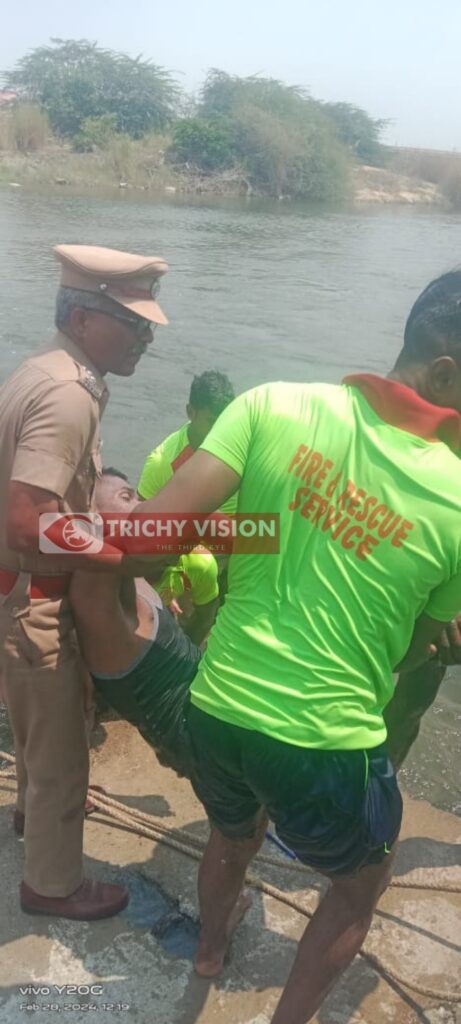 இதை கண்ட சக நண்பர்கள் கூச்சலிட்டனர். உடனே இது குறித்து உடனடியாக தீயணைப்புத் துறையினருக்கு சக மாணவர்கள் தகவல் தெரிவித்தனர். விரைந்து வந்த கண்டோண்மென்ட் தீயணைப்பு துறை வீரர்கள் ரப்பர் படகு மூலம் நீரில் அடித்து செல்லப்பட்ட மாணவன் தீபனை தேடி வந்தனர். நீண்ட நேர தேடுதலுக்கு பிறகு காவிரி ஆற்றில் அடித்த சொல்லப்பட்ட மாணவன் தீபன் சடலமாக மீட்கப்பட்டார். மாணவன் உயிரிழந்த சம்பவம் கல்லூரியில் பெரும் சோகத்தை ஏற்படுத்தி உள்ளது.
