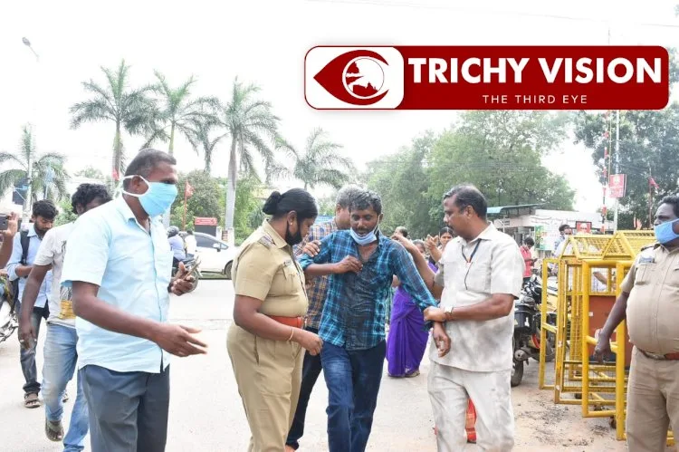 ஊராட்சி மன்ற தலைவர் மீது நடவடிக்கை எடுக்க கோரி விவசாயி தீ குளிக்க முயற்சி – திருச்சியில் பரபரப்பு!!