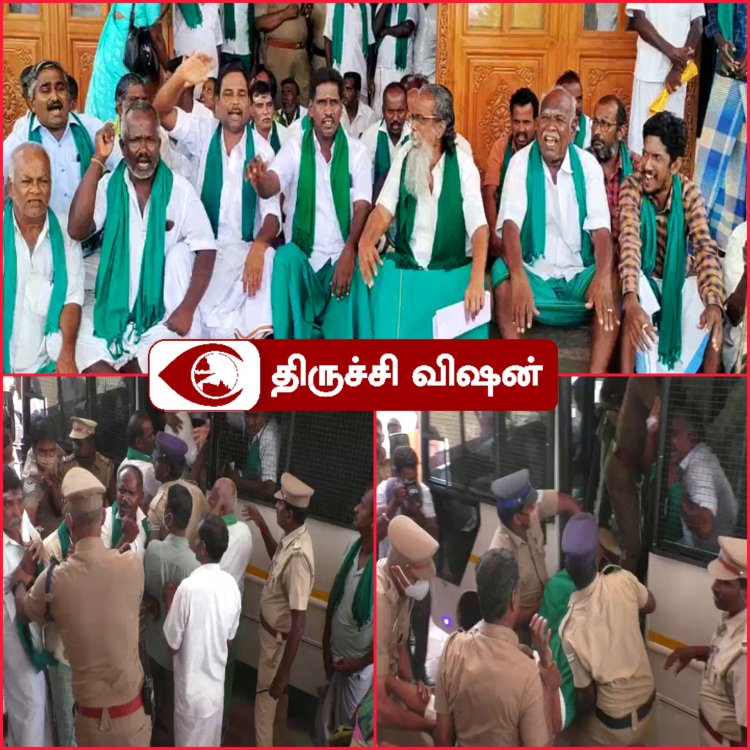 திருச்சி ஆட்சியர் அலுவலகத்திற்குள் போலீசாருக்கும் விவசாயிகளுக்கும் தள்ளுமுள்ளு குண்டுகட்டாக தூக்கி கைது