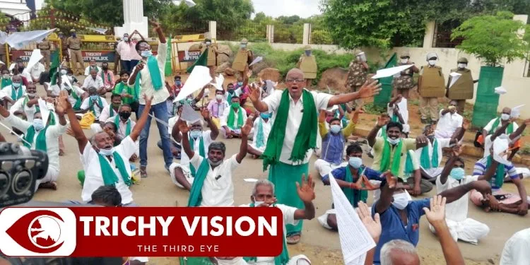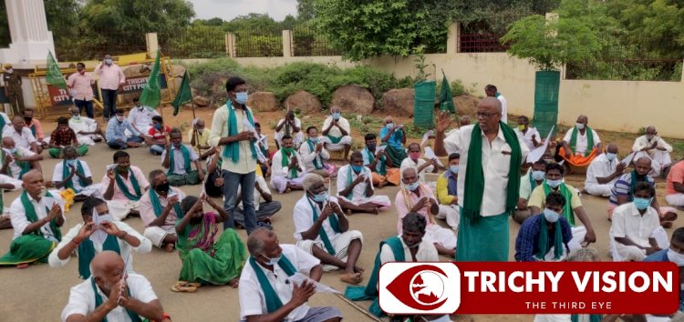 விவசாயிகள் சங்க தலைவர் அய்யாக்கண்ணு தலைமையில் விவசாயிகள் திருச்சி மாவட்ட ஆட்சியர் அலுவலகத்தில் முற்றுகையிட்டு ராக்கெட் விடும் நூதன போராட்டம் நடத்தி வருகின்றனர்.