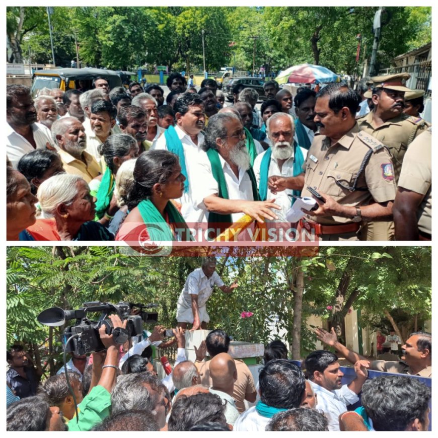 அதைத் தொடர்ந்து விவசாயிகள் கலைந்து சென்றனர். இந்த சம்பவத்தால் சிறிது நேரம் பரபரப்பு ஏற்பட்டது இதைத் தொடர்ந்து அய்யாக்கண்ணு தலைமையில் விவசாயிகள் திருச்சி மாவட்ட ஆட்சியர் அலுவலகத்திற்கு சென்று ஆட்சியர் பிரதீப் குமாரை சந்தித்து கோரிக்கைகளை வலியுறுத்தி மனு அளித்தனர்.