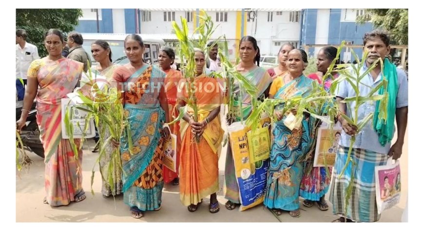 இதனால் அப்பகுதியை சேர்ந்த விவசாயிகள் நோய் தாக்கம் ஏற்பட்ட மக்காச்சோளம் பயிர்களுடன் திருச்சி மாவட்ட ஆட்சித்தலைவர் பிரதீப் குமாரிடம் ஏக்கருக்கு 50,000 நஷ்ட ஈடு கேட்டு கோரிக்கை மனு அளிக்க வந்தனர்.