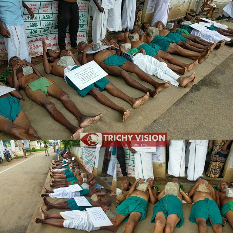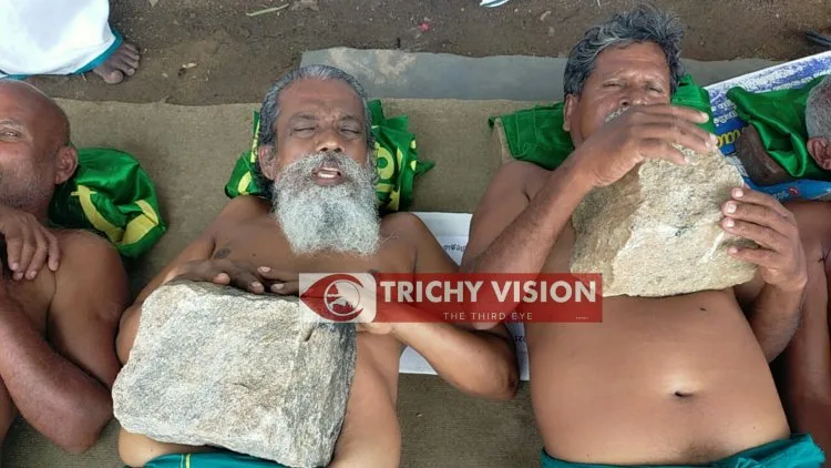 கோரிக்கைகளுடன் தேசிய தென்னிந்திய நதிகள் இணைப்பு விவசாயிகள் சங்கத்தின் சார்பாக மாநில தலைவர் அய்யாக்கண்ணு தலைமையில் 46 நாட்கள் உண்ணாவிரதம் கரூர் பைபாஸ், மலர் சாலையில் நடத்தப்பட்டு வருகிறது.இன்று (25.10.2021) 14வது நாளாக இன்று விநோத முறையில் உண்ணாவிரத போராட்டத்தில் ஈடுபட்டுள்ளனர்.