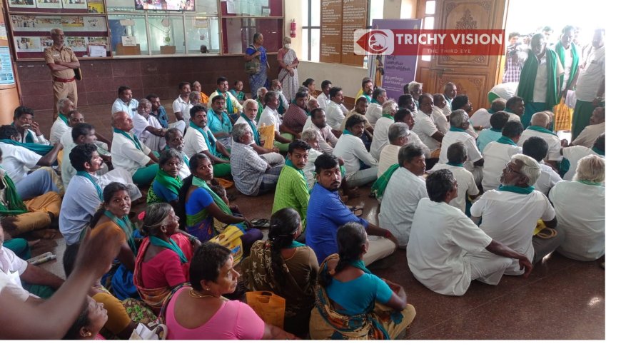 தேசிய தென்னிந்திய நதிகள் இணைப்பு விவசாயிகள் சங்க தலைவர் அய்யாக்கண்ணு தலைமையில் 150க்கும் மேற்பட்ட விவசாயிகள் இன்று திருச்சி மாவட்ட ஆட்சியர் அலுவலக நுழைவாயில் முன்பு தர்ணா போராட்டம் நடத்தினார். முன்னதாக விவசாயிகள் குறைதீர்க்கும் நாள் கூட்டத்தில் விவசாயிகளின் கோரிக்கையை எடுத்துரைத்து வெளிநடப்பு செய்தனர்.
