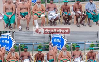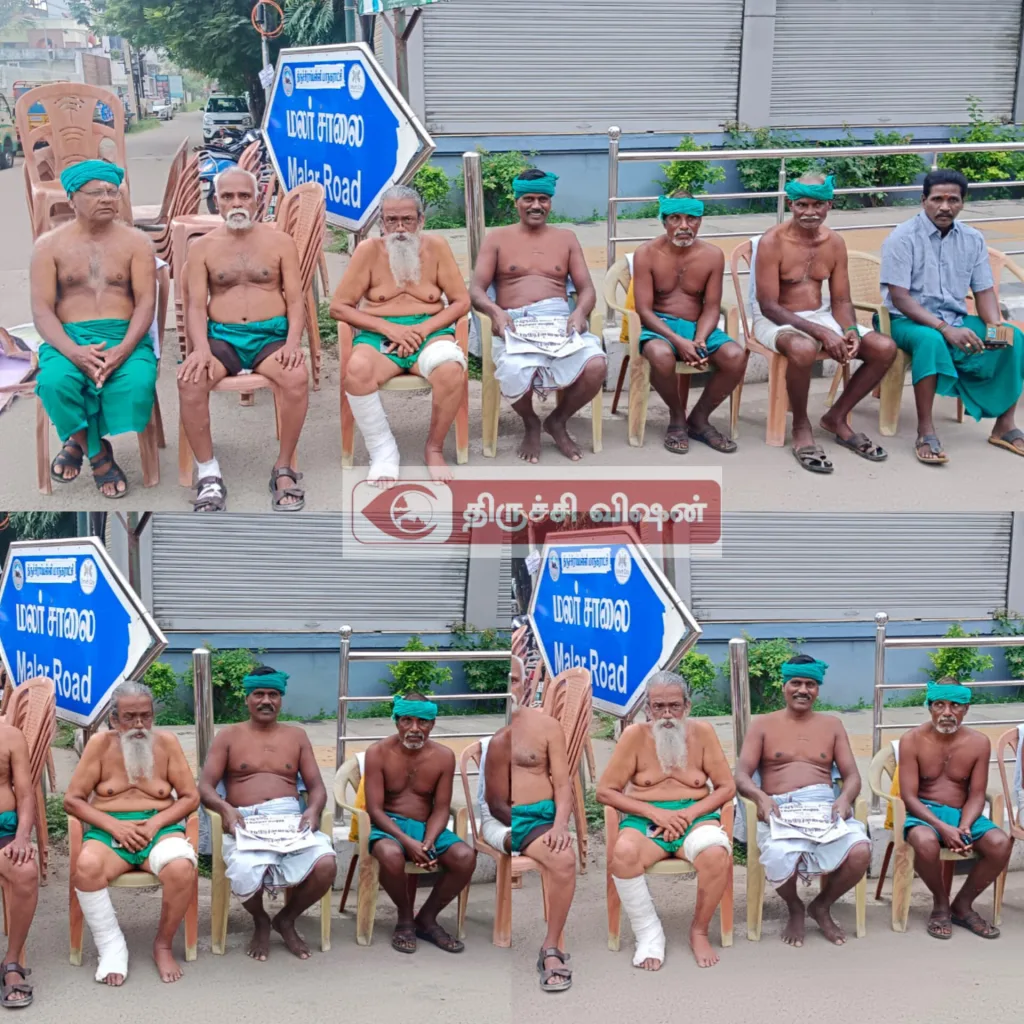அய்யாக்கண்ணு தலைமையில் விவசாயிகள் அண்ணாமலை நகர், திருச்சி-கரூர் பைபாஸ் சாலையில் தமரோ பர்னிச்சர் முன்பு தொடர் காத்திருப்பு உண்ணாவிரதம் போராட்டத்தில் ஈடுபட்டுள்ளனர்.