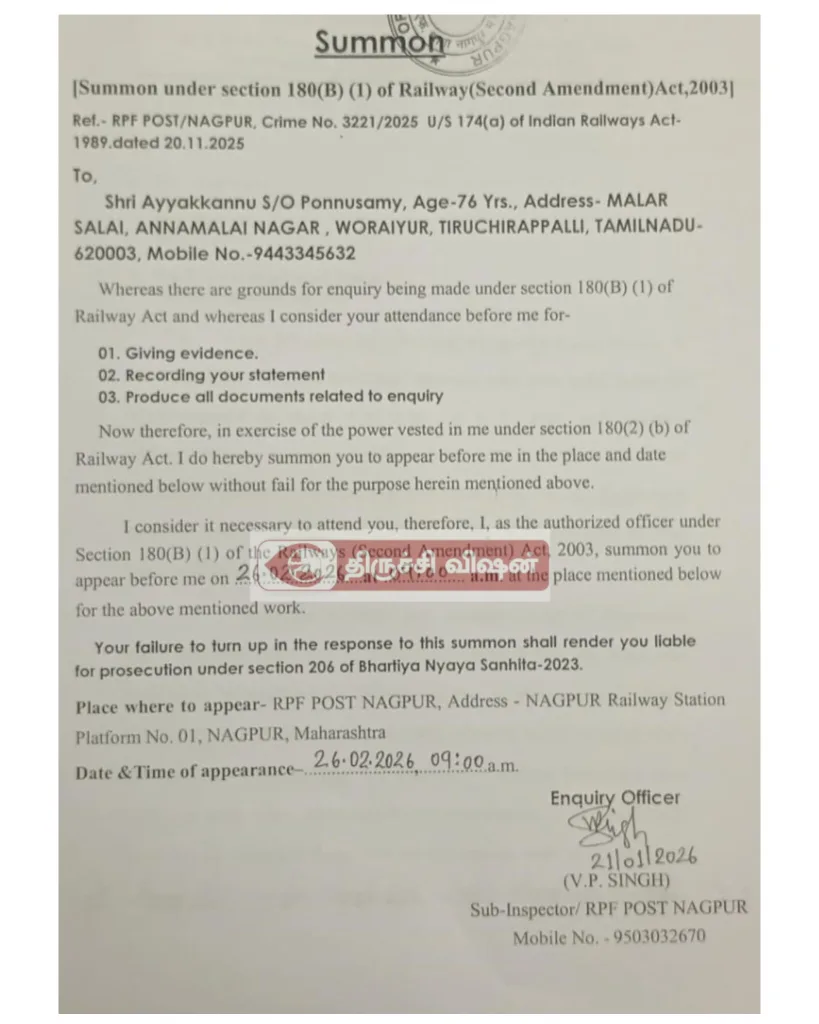 நாக்பூர்.கோர்டில் ஆஜர் ஆக காலை திருச்சி ரயில் நிலையத்தில் இருந்து