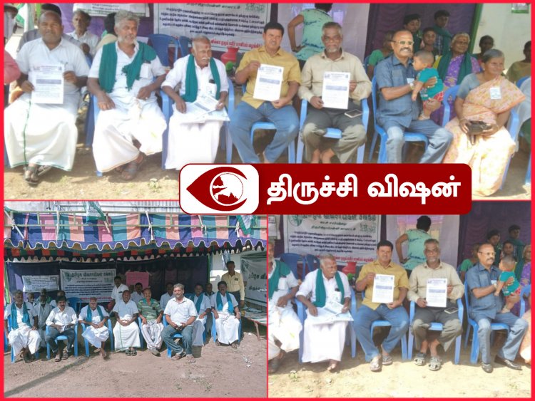 திருச்சி மாவட்டத்தில்13 ஏரிகளில் மண்ணை கொட்டி ஆக்கிரமிக்கப்பட்டு அரைவட்ட சுற்றுச் சாலை அமைப்பதை நிறுத்தி உயர்மட்ட பாலம் கட்டவும், வயலூர்-சோமரசம்பேட்டை- புத்தூர் வழி சாலை ஆக்கிரமிப்புகளை அகற்றி அகண்ட சாலை அமைப்பது, உய்யகொண்டான் கரைகளை அகலமாக்கி போக்குவரத்து சாலை அமைப்பது உள்ளிட்ட 15 அம்ச கோரிக்கைகளை வழியுறுத்தியும் / தொடர் போராட்டங்களில் அதிகாரிகள் கொடுத்த வாக்குறுதிகளை உடனே நிறைவேற்ற கோரியும் தண்ணீர் அருந்தா உண்ணா நிலை போராட்டம் தமிழக முதல்வர் திருச்சி வரும் நாளான 29.12.2022 அன்று நடத்துவதாக தமிழக விவசாயிகள் சங்கத்தின் திருச்சி மாவட்ட தலைவர் அய்யா ம.ப.சின்னதுரை அவர்கள் அறிவித்திருந்தார்.