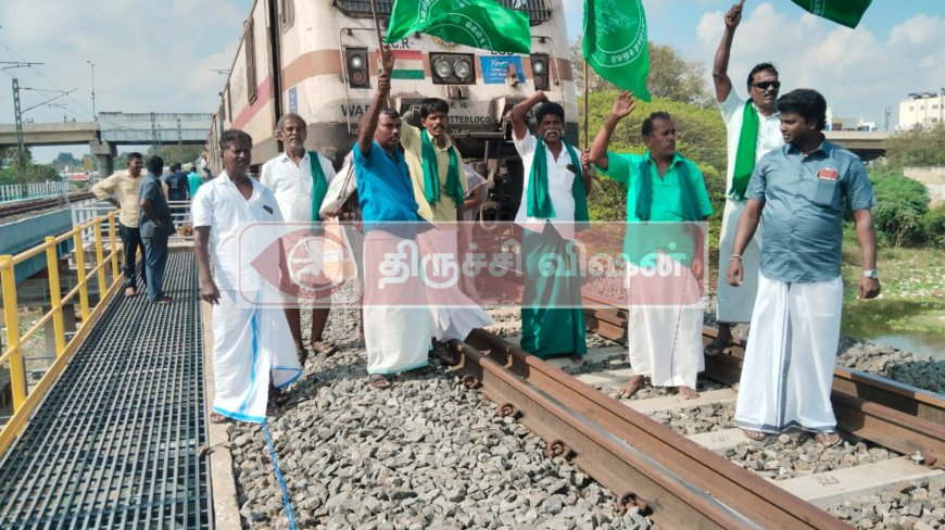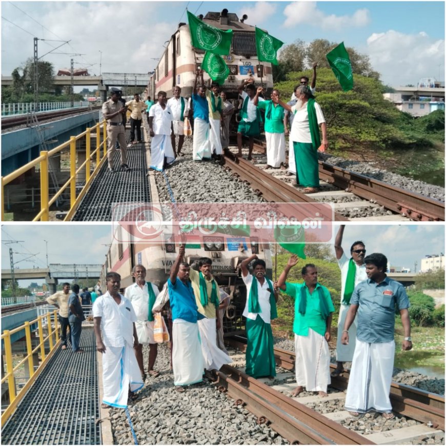 திருச்சியில் அதிவேகமாக வந்த ரயிலை ஆற்று பாலத்தில் மறித்து விவசாயிகள் திடீர் போராட்டம் – விவசாயிகள் கைது