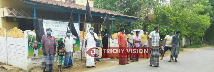 இன்று திருச்சி மாவட்டத்தில் திருச்சி மாநகரம் மற்றும் அந்தநல்லூா், மணிகன்டம், துறையூா், மணப்பாறை, லால்குடி, உப்பியபுரம், முசிறி உள்ளிட்ட அணைத்து ஒன்றிய பகுதிகளிலும் ஆயிரகணக்கான வீடுகள், கட்சி அலுவலகங்களில் கறுப்பு கொடி ஏற்றப்பட்டது.